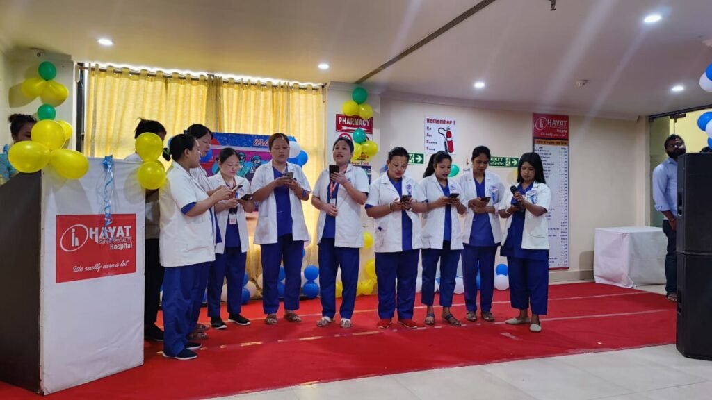 Conclusion: The Nurses Day celebration at Hayat Hospital Guwahati was a momentous occasion to honor and appreciate the outstanding contributions of our nursing staff. It showcased the unwavering dedication, compassion, and professionalism they bring to their roles every day. We are grateful for their tireless efforts and the vital role they play in delivering exceptional patient care. Hayat Hospital Guwahati remains committed to providing a supportive and empowering environment that enables our nurses to thrive and continue making a positive impact on the lives of our patients and their families.